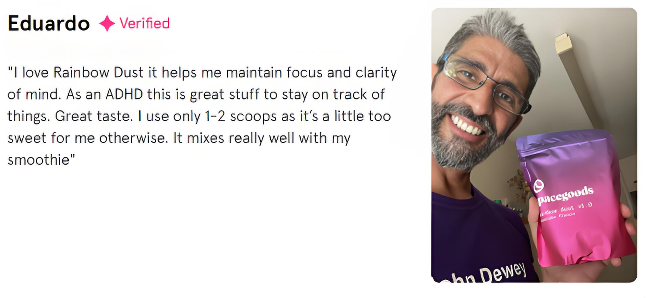 Rainbow Dust is a 'for us, by us' product, meaning we've designed and developed it for ourselvesfrst, knowing that people just like us (entrepreneurs, creatives & hustlers of all kinds) will love it too.The whole idea of 'Rainbow Dust' centres around longevity and sustainability, meaning you can takeit everyday and never feel like you need a break - without experiencing any negative side effects ordependancy. In summary, you will feelsharper focus,sustained energy (both mentally & physically)and azen-like calm throughout the day - zero jitters & zero crash